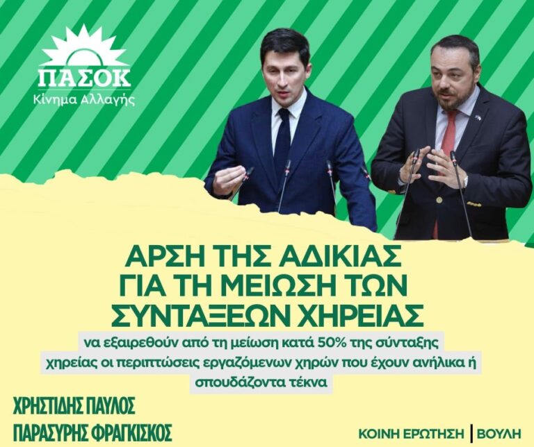 Αρθρογραφία - Τελευταία Νέα Την άρση της αδικίας για τη μείωση των Συντάξεων Χηρείας, ζήτησε ο Φραγκίσκος Παρασύρης