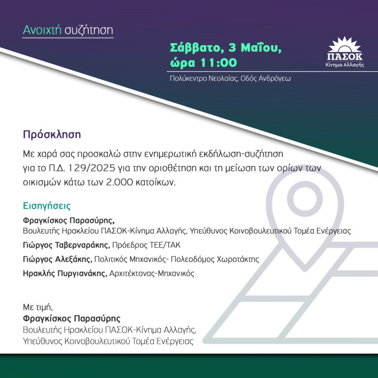 Αρθρογραφία - Τελευταία Νέα Ανοικτή εκδήλωση για το Π.Δ. που μειώνει τα όρια των οικισμών, διοργανώνει ο Φραγκίσκος Παρασύρης